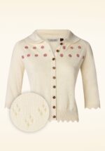 In diesen Rose Cardigan in Off White kann man sich sofort verlieben! Die Strickjacke hat einen kleinen, süßen, abgerundeten Kragen, schmeichelnde 3/4 Ärmel und eine Reihe mit Blumenknöpfen aus Holz. Vollendet mit einem gezackten Rippbündchen, Lochmuster und gestickten rosa Blumen. Neben der Tatsache, dass sie toll aussieht, trägt sie sich auch ungemein fein, denn sie wurde aus einem dehnbaren, feingestrickten Viskosemix in Off White gefertigt. Mit dieser Süßen freut man sich auf den Frühling! 😉 * Kleiner, abgerundeter Kragen * Reihe mit Holzknöpfen * 3/4 Ärmel * Gezackte Rippbündchen * Lang genug, um mit einer normalen Hose kombiniert zu werden