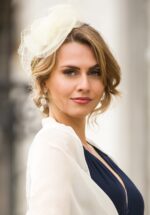 Deine Schönheit ist, wie du trägst, wer du bist! – Dieser wunderbare Fascinator in Creme aus Gaze wurde mit einer großen klassischen Schleife und einem Netz-Schleier mit flauschigen Pünktchen versehen. Vollendet mit einer Haarklammer, damit er bleibt, wo er sein soll. * Schleier aus Gaze * Schleife * Haarklammer