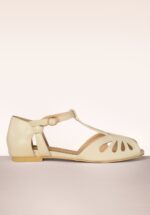 Erlebe deine eigene Vintage Sommer Romanze mit diesen Mable Peeptoe Pumps in Creme an deinen Füßen! Gefertigt aus cremefarbenem ‚faux‘ Leder mit Lochmuster-Details, einem Peeptoe und einem Absatz, der genau die richtige Höhe hat um elegant, aber doch auch bequem zu sein. Es ist egal, mit was du sie kombinierst, denn sie passen zu all deinen (Vintage) Outfits! Aber für welche Farbe entscheidest du dich?! * Peeptoe * Verstellbarer Knöchelriemen * Goldfarbene Schnalle * Stabiler Absatz * Comfy Innensohle * Anti-Rutsch Sohle