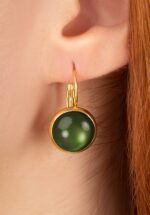 Suchst du Ohrringe, die zu jedem Outfit passen? Dann sind diese 60er Goldplated Dot Ohrringe in Glossy Moss wie für dich gemacht! Ob du dich nun für den klassischen Fifties Look entscheidest, oder doch lieber Seventies Boho Chique, diese kurzen Hänger wiegen nichts und passen tatsächlich zu allem. Hergestellt aus einem vergoldeten Haken und versehen mit einem glänzenden, moosgrünen Stein… “eye and ear candy!“ * Ohrhänger * Vergoldeter rostfreier Leverback Verschluss aus Stahl * Verfärben und flecken nicht * Nickelfrei (antiallergeen)
