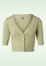 Dieser Cardigan ist schlicht und edel zugleich – und damit das perfekte Match zu all deinen Vintage-Looks! Das kurz geschnittene Modell mit elegantem V-Ausschnitt und ellbogenlangen Ärmeln hat große, glänzende Knöpfe, die für eine Retro-Note sorgen. Es ist aus einem fein gestrickten Viskosemix in hellem Olivgrün gefertigt, der dank seines Stretchanteils wie angegossen sitzt. Die Styling-Möglichkeiten sind endlos! * V-Ausschnitt * Ellbogenlange Ärmel * Knopfleiste * Elastische Rippbündchen an Dekolleté, Ärmeln und Saum * Kürzerer Schnitt