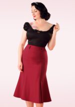 Einen Tag im Büro, eine Shoppingtour mit den Mädels oder einen Theaterbesuch … der 50s Sheila Swing Skirt in Wine wird die perfekte Begleitung sein! Dieser Rock, in einem klassischen und eleganten Look und mit einer angenehmen Passform, ist für jeden Anlass perfekt geeignet! Diese Schönheit wird in Taillenhöhe getragen und verleiht eine umwerfende Sanduhr-Figur, ooh la la. Er ist hergestellt aus einem anschmiegsamen, dehnbaren, dunkelroten Stoff der bei jeder Bewegung mitschwingen wird. Sheila ist ein vielseitiger Rock auf den man nicht verzichten möchte! * Weiter Swingrock * Eingriffstaschen an den Seiten * Schlupfrock * Fällt bei einer Größe von 1,70 m etwas über das Knie * Exklusiv bei Topvintage erhältlich
