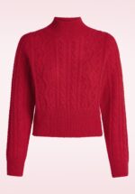 Struktur und ein satter Farbakzent: Mit diesem wunderschönen Pullover verleihst du deinem Look einen Hauch von Wärme und stilvolle Eleganz! Das langärmelige Modell mit hohem Kragen besticht durch ein auffälliges, durchbrochenes Zopfmuster, das für eine verspielte Note sorgt. Es ist aus einem dehnbaren, fein gestrickten Materialmix in feurigem Rot gefertigt. Durch einen Hauch von Wolle und Mohair ist der Pullover herrlich weich und warm. * Hoher Kragen * Lange Ärmel * Passend für Hosen mit normaler Leibhöhe