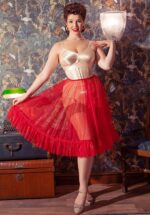 “Behind every great twirl is a trusty petticoat!“ Die doppelte Stoffschicht verleiht extra Volumen und schwingt graziös mit dir mit und wurden mit spielerischen Rüschen am Saum versehen. Die oberste Schicht wurde aus knallrotem Tüll und der Unterrock aus glänzendem Satin gefertigt. Vollendet mit einem elastischen Bund. Dieser Petticoat verleiht jedem Swing Kleid das gewisse Extra! * Plus-size * Geeignet für all unsere Swing Kleider und Röcke * Elastischer Taillenbund * Fällt über das Knie bei einer Größe von 1,70 m
