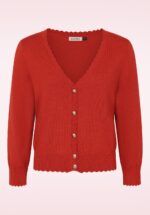 “Shell-ebrating the beauty of Thelma!“ Diese süße Strickjacke zeigt sich mit einem V-Ausschnitt, gewelltem Saum und goldigen Muschelknöpfen. Gefertigt aus einem feingestrickten, weichen und dehnbaren Baumwoll-/Viskosemix in Rostrot. Hast du all die fantastischen Kombinationen schon vor Augen? * V-Ausschnitt * Gewellte Paspeln * 3/4 Ärmel * Knopfreihe * Stretchy Rippbündchen