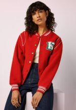 Gebt mir ein „K“! Gebt mir ein „L“! King Louie hat auch in dieser Saison wieder eine großartige Kreation herausgebracht! Diese Baseballjacke im College-Stil ist aus einem feuerroten Mischgewebe mit einem Hauch von Wolle (nicht dehnbar!) gefertigt. Sie besticht durch kontrastierende weiße Paspeln und ein ausgefallenes Teddy-Patchwork auf der Vorderseite. Sportliche Retro-Vibes mit einem modischen Twist. Wer kann dazu schon Nein sagen? * Jacke * Gerippte Bündchen * Seitliche Eingrifftaschen * Mit satiniertem Stoff gefüttert * Druckknöpfe