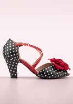 “Let your shoes do the talking!“ Gefertigt aus einer großartigen Kombination aus schwarzem Vegan-Leder mit weißen Polka Dots und roter Suedine, vollendet mit gekreuzten Bändchen, einer auffälligen Blumen-Applikation und einem verführerischen Peeptoe. * Peeptoes * Verstellbarer Riemen * Stabiler, hoher Absatz * Comfy Innensohle * Anti-Rutsch Sohle