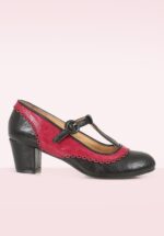 Eine Hommage an die Vergangenheit mit festem Auftritt in der Gegenwart! Diese Vintage-inspirierten T-Riemen-Pumps bestechen durch reizvolle Lochverzierungen und haben einen stabilen mittelhohen Trichterabsatz. Sie sind aus hochwertigem Kunstleder in Schwarz und Rot gefertigt. * T-Riemen-Pumps * Verstellbarer Riemen * Mittelhoher Trichterabsatz * Bequeme Innensohle * Rutschfeste Laufsohle