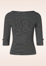 Elegant und niedlich ist dieses Simply Stripe Top in Schwarz! Einfach, aber dennoch besonders durch seine lieblichen Details. Das Top hat einen hübschen ‚Slash‘-Ausschnitt und Ärmel mit kleinen Schleifchen an den Säumen, einfach süß! Hergestellt aus herrlich weichem, dehnbarem, schwarzem Baumwolle mit weißen Streifen, die auch nach mehreren Waschgängen perfekt passen werden. Ein vielseitiges, schickes Top, das in keinem Kleiderschrank einer echten Vintage-Lady fehlen darf 😉 * ‚Slash‘-Ausschnitt * 3/4 Ärmel * Feste Schleifchen * Lang genug, um zu einer normalen Hüfthose zu tragen