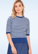 Gianna Cotton Zickzack-Strickoberteil in Blau-Weiß