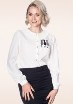 Punkte sammeln? Das wird ein Kinderspiel sein mit dieser super vielseitigen 60s Boxy Dot Blouse in White! Partyfein in Kombination mit einem Bleistiftrock, lässig schick zu einer Hose und auch zu einer Jeans wird dieses Schätzchen perfekt passen. Gerade geschnittene Bluse mit einer hohen Halslinie und langen Ärmeln in einem fließenden, glatten, weißen Stoff (nur sehr gering dehnbar) mit einem all-over Muster aus schwarzen Polkadots. Herrlich angenehm und trageleicht. Diese Bluse wird diese Saison 100 Punkte bekommen! * Hohe Halslinie * Lange Ärmel mit Manschetten * Gerade geschnittenes Modell * Schlüsselloch-Detail mit Knopfverschluss auf der Rückseite * Ausreichend lang, du kannst sie zu einer Hüfthose tragen