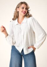 Nichts als Liebe für diese Bluse! Gefertigt aus einem angenehmen, nicht dehnbaren Stoff in Weiß, der sich komfortabel trägt und ein einzigartiges Herzchenmuster zeigt… LIEBE! * Loose Fit Modell * Spitzer Kragen * Knopfverschluss * Lange, leicht puffende Ärmel mit schmalen Manschetten * Lang genug, um mit einer normalen Hose kombiniert zu werden * Bitte beachte: Die Farbe der Hose im Video kann von der tatsächlichen Farbe der Hose abweichen