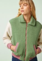 Ein kuscheliger Traum in Pastell! Diese tolle Bomberjacke ist ein echter Hingucker: Der weiche, recycelte Teddystoff mit leichtem Stretchanteil ist herrlich angenehm zu tragen. Die Paspeln und der Reißverschluss in Rosa verleihen dem mintgrünen Rumpf mit cremefarbenen Ärmeln eine besonders fröhliche Note. Kurz, gemütlich und voller Retro-Charme – diese Jacke peppt jedes Outfit auf! * Bomber-Style * Spitzkragen * Lange Ärmel mit elastischen Bündchen * Elastischer Bund * Taschen auf der Vorderseite * Vollständig gefüttert * Reißverschluss