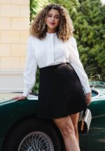 Ob im Büro oder beim Ausgehen: Dieser Swingrock im Stil der Fifties ist dein idealer Begleiter! Dank seines edlen, raffinierten Looks und der bequemen Passform eignet er sich perfekt für jede Gelegenheit. Dieses tolle Modell wird hoch in der Taille getragen und zaubert eine atemberaubende Sanduhrfigur. Es ist aus einem anschmiegsamen, elastischen und glatten Stoff in Schwarz gefertigt, der leicht glänzt und bei jedem Schritt wunderschön mitschwingt. Aliyah lässt dich immer umwerfend aussehen! * Semi-Swing-Modell * Gerafftes Taillenband * Fest vernähte Schleifenbänder * Kein Reißverschluss, keine Knöpfe * Exklusiv bei Topvintage erhältlich * Endet bei einer Körpergröße von 1,70 m unterhalb des Knies