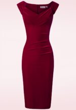 Exklusiv bei Topvintage ~ Laura Falten ‚Samt‘ Etuikleid in Weinrot