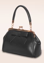 Diese 50s Crazy Little Thing Bag in Black ist ein echtes Polkadot-Schätzchen! Diese schwarze Handtasche hat einen auffälligen und goldfarbenen Knipsverschluss aus Metall für einen echten vintage Look. Hergestellt aus schwarzem Leder-Imitat mit einem Muster aus cremefarbenen Polkadots und geschmückt mit einer Schleife aus Lack und einem Muschelrand. Sie wird geliefert mit einem abtrennbaren und verstellbaren Schulterriemen damit man die Tasche auch an der Schulter tragen kann. Und deine Sachen werden darin ausreichend Platz finden, es gibt also überhaupt keinen Grund sie dir entgehen zu lassen. Nur einen einzigen Mausklick und… dieses vintage Schmuckstück wird dir gehören 😉    * Kleines Format * Knipsverschluss * Innenfach mit 3 extra Fächer, eins davon mit Reißverschluss * Abtrennbarer Schulterriemen * Kann auch „crossbody“  getragen werden * Vollständig gefüttert * Bietet Platz an dein Handy, den Schlüsselbund und ein kleines Make-up-Etui