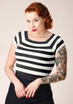 So richtig tolle Basics bieten dir unendliche Styling-Optionen! Das Oberteil Kaylie wird in dieser Saison garantiert zu deinem Lieblings-Top! Der taillierte Schnitt und die kurzen Raglanärmel harmonieren perfekt miteinander, und der quadratische Ausschnitt verleiht deinem Look feminine Eleganz. Das Modell aus einer fein gestrickten, weichen und elastischen Bambus-Viskose-Mischung in Schwarz-Weiß ist herrlich angenehm zu tragen. Hol dir dieses Oberteil und stelle unzählige Outfits zusammen! 😉 * Quadratischer Ausschnitt * Kurze Raglanärmel * Passend für Hosen mit normaler Leibhöhe