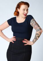 So richtig tolle Basics bieten dir unendliche Styling-Optionen! Das Oberteil Kaylie wird in dieser Saison garantiert zu deinem Lieblings-Top! Der taillierte Schnitt und die kurzen Raglanärmel harmonieren perfekt miteinander, und der quadratische Ausschnitt verleiht deinem Look feminine Eleganz. Das Modell aus einer fein gestrickten, weichen und elastischen Bambus-Viskose-Mischung in Marineblau ist herrlich angenehm zu tragen. Hol dir dieses Oberteil und stelle unzählige Outfits zusammen! 😉 * Quadratischer Ausschnitt * Kurze Raglanärmel * Passend für Hosen mit normaler Leibhöhe