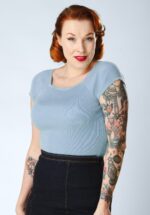 So richtig tolle Basics bieten dir unendliche Styling-Optionen! Das Oberteil Kaylie wird in dieser Saison garantiert zu deinem Lieblings-Top! Der taillierte Schnitt und die kurzen Raglanärmel harmonieren perfekt miteinander, und der quadratische Ausschnitt verleiht deinem Look feminine Eleganz. Das Modell aus einer fein gestrickten, weichen und elastischen Bambus-Viskose-Mischung in Himmelblau ist herrlich angenehm zu tragen. Hol dir dieses Oberteil und stelle unzählige Outfits zusammen! 😉 * Quadratischer Ausschnitt * Kurze Raglanärmel * Passend für Hosen mit normaler Leibhöhe
