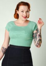So richtig tolle Basics bieten dir unendliche Styling-Optionen! Das Oberteil Kaylie wird in dieser Saison garantiert zu deinem Lieblings-Top! Der taillierte Schnitt und die kurzen Raglanärmel harmonieren perfekt miteinander, und der quadratische Ausschnitt verleiht deinem Look feminine Eleganz. Das Modell aus einer fein gestrickten, weichen und elastischen Bambus-Viskose-Mischung in Mintgrün ist herrlich angenehm zu tragen. Hol dir dieses Oberteil und stelle unzählige Outfits zusammen! 😉 * Quadratischer Ausschnitt * Kurze Raglanärmel * Passend für Hosen mit normaler Leibhöhe