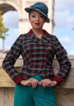 Eine Hommage an zeitlose Weiblichkeit – wo zart-elegante Schnitte auf die Romantik der Pariser Winter treffen. Dieser Blazer aus der neuen Kollektion wurde von der fabelhaften Marie-Louise Carven inspiriert, einer wegweisenden französischen Modeschöpferin der 40er und 50er Jahre. Die kurze, taillierte Blazerjacke hat lange Ärmel mit Umschlagsaum, einen abgerundeten Kragen und eine doppelte Knopfreihe. Sie ist aus einem festen (nicht dehnbaren) Mischgewebe gefertigt und zeigt ein Schottenmuster in Schwarz, Bordeaux, Petrol, Rosa, Violett und Gelb. * Figurnaher Schnitt * Abgerundeter Kragen * Lange Ärmel mit Umschlagsaum * Doppelte Knopfleiste (eine echte und eine Zierleiste) * Mit Taschen