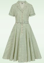 “Steer yourself in the right direction!“ Diese luftige Swing Schätzchen hat einen eleganten V-Ausschnitt, einen Reverskragen, kurze Ärmel und entfaltet sich in einen wunderschönen Swing Rock, der dir eine wunderschöne feminine Silhouette verleiht! Gefertigt aus einer angenehmen und luftigen, cremefarbenen Baumwolle (100%), verziert mit grünen Streifen und Ankern. * Swing Modell * V-Ausschnitt * Reverskragen * Kurze Ärmel mit fest umgeschlagenen Saum * Knopfreihe * Abnehmbarer Gürtel für eine besonders tolle Taille * Seitentaschen * Fällt bei einer Größe von 1,70 m bis zur Wadenmitte