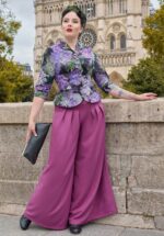 Eine Hommage an zeitlose Weiblichkeit – wo zart-elegante Schnitte auf die Romantik der Pariser Winter treffen. Diese weit geschnittene Hose aus der neuen Kollektion wurde von der fabelhaften Marie-Louise Carven inspiriert, einer wegweisenden französischen Modeschöpferin der 40er und 50er Jahre. Sie ist aus einem festen und doch geschmeidigen, violetten Mischgewebe hergestellt und trägt sich wunderbar bequem. * Hohe Leibhöhe * Reißverschluss mit Knöpfen an der Seite * Seitliche Eingrifftaschen * Pattentaschen hinten * Gerades, weites Hosenbein mit Faltenwurf