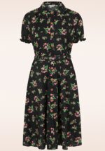 “Bloom your own way!“ Strahle in diesem luftigen Semi-Swing Kleid! Es hat einen abgerundeten Kragen, spielerische kurze Puffärmel mit Gummizug und entfaltet sich in einen wundervollen Semi-Swing Rock, der dir eine tolle feminine Silhouette verleiht! Gefertigt aus einer angenehmen und luftigen, schwarzen Baumwolle (100%), die mit wunderschönen Blumen in Rosa, Grün und Gelb gemustert wurde. * Semi-Swing Modell * Abgerundeter Kragen * Kurze Puffärmel mit Gummizug * Knopfreihe * Abnehmbarer Gürtel für eine besonders tolle Taille * Fällt bei einer Größe von 1,70 m bis zur Wadenmitte