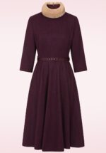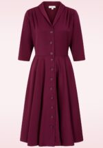 D’Laine ist ein wahr gewordener Vintage-Traum! Das Kleid mit Rundkragen, Knopfleiste und ¾-Ärmeln wirkt besonders weiblich und unglaublich elegant. Ab der Taille fällt es als weiter, fließender Swingrock, der eine tolle feminine Silhouette zaubert. Das bordeauxrote Modell ist aus einem robusten, aber dennoch weichen Mischgewebe mit einem Hauch Viskose gefertigt, das dank seines Stretchanteils für eine schöne Passform sorgt. Manchmal werden Träume wirklich wahr! 😉 * Weiter Swing-Style * V-Ausschnitt * Rundkragen * Knopfleiste * ¾-Ärmel * Kann mit einem unserer Petticoats kombiniert werden * Endet bei einer Körpergröße von 1,70 m unterhalb des Knies