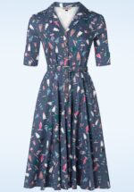 “Walking in a winter wonderland!“ Dieses Ski Snow Season Swing Kleid zeigt einen eleganten V-Ausschnitt, einen Reverskragen, 3/4 Ärmel und entfaltet sich in einen wunderschönen Swing Rock, der dir eine tolle feminine Silhouette verleiht! Gefertigt aus einem festen, aber angenehmen Baumwollmix (leicht dehnbar) versehen mit einem herzallerliebsten winterhaftes Muster.  * Swing Modell * V-Ausschnitt * Reverskragen * 3/4 Ärmel mit Schlitz * Knopfreihe * Abnehmbarer Gürtel * Seitentaschen  * Fällt bei einer große von 1,70 m auf die Mitte der Wade