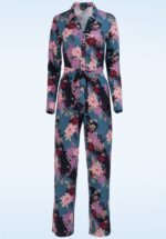 Dieses wunderschöne Teil lässt dich aufblühen! Der elegante Jumpsuit Bella eignet sich perfekt für die kälteren Tage. Das langärmelige Modell hat einen schmeichelhaften V-Ausschnitt mit Spitzkragen und lange, weite Hosenbeine, die einen femininen Look kreieren. Der passende Bindegürtel betont deine Taille, während das prächtige Muster mit Blumen und Vögeln in Violett- und Rosatönen einen tollen Kontrast zum kornblumenblauen Untergrund bildet. Der Jumpsuit ist aus einem weichen und elastischen EcoVero-Viskosemix gefertigt, der herrlich angenehm zu tragen ist.   * Jumpsuit * Spitzkragen * Lange Ärmel * Knopfleiste * Abnehmbarer Bindegürtel für eine besonders betonte Taille * Mit Taschen! * Lange, weite Hosenbeine