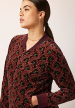 Der Bomber-Style ist wieder total angesagt – und diese bordeauxrote Bomberjacke ist ein absoluter Hingucker! Die Rückseite dieses luxuriös wirkenden Modells aus weichem, samtigem Stoff besticht durch eine wunderschöne Stickerei mit Blumen und einem Vogel. Klassische Bomber-Details wie elastische Rippbündchen und ein Reißverschluss sorgen für einen authentischen Look.   * Samtoptik  * Stickerei auf der Rückseite * Gerippte Bündchen * Seitliche Eingrifftaschen  * Reißverschluss * Mit satiniertem Stoff gefüttert  * Ideal dazu: die passende Samt-Hose Peppa Gamine für einen stylischen Look von Kopf bis Fuß