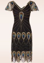 Amelia Peacock Flapper-Kleid in Schwarz und Blau