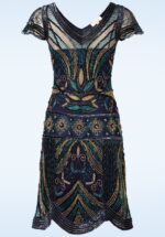 • Amelia Peacock Flapper-Kleid in Schwarz und Blau