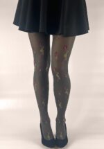 Bitte verstau deine kurzen Röcke und Kleider noch nicht… denn diese Strumpfhose möchte gesehen werden! Gefertigt aus einem schönen, fast transparenten grauen Stoff (60 Denier) mit einem zierlichen Muster der Blumen und Vögel – trägt sich herrlich. * Verstärkter Zehenbereich * 60 Denier