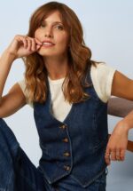 Ein Traum aus Denim: Diese dunkelblaue Weste ist das perfekte Highlight für jedes Outfit! Das Modell ist aus einem festen, aber dennoch geschmeidigen Baumwoll-Viskose-Mix mit Circulose-Anteil gefertigt (Circulose ist ein innovatives Recycling-Material aus Textilabfällen). Der Stoff ist nicht dehnbar, bietet aber einen angenehmen, natürlichen Tragekomfort und sorgt für eine tolle Passform. * Kürzere Länge * Ärmellos * 2 angedeutete Paspeltaschen * Knopfleiste * Ideal dazu: die passende Denim-Hose Paige Playa oder der Denim-Rock Marie Playa für einen stylischen Look von Kopf bis Fuß