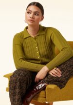 Hier trifft Komfort auf zeitlosen Charme: Mit dieser wunderschönen Strickjacke in Currygelb bringst du Sonnenschein und den Zauber der 70er Jahre in deinen Kleiderschrank. Das langärmelige Modell mit Spitzkragen besticht durch ein zartes Lochmuster. Es ist aus einer weichen Baumwollmischung mit einem Hauch Kaschmir gefertigt, der für ein besonders luxuriöses Tragegefühl sorgt. Ideal, um deinem Look auch an kühleren Tagen einen sonnigen Farbtupfer und etwas Retro-Flair zu verleihen! * Cardigan * Spitzkragen * Lange Ärmel * Lochmuster * Knopfleiste * Elastische Rippbündchen * Ideale Länge auch in Kombination mit Low-Waist-Hosen
