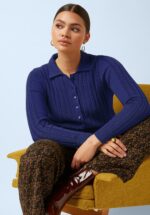 Diese wunderschöne Strickjacke in Rhodonitblau versprüht den Charme der 70er Jahre. Das langärmelige Modell mit Spitzkragen besticht durch ein zartes Lochmuster. Es ist aus einer weichen Baumwollmischung mit einem Hauch Kaschmir gefertigt, der für ein besonders luxuriöses Tragegefühl sorgt. Ideal, um deinem Look in diesem Herbst einen schönen Farbtupfer und etwas Vintage-Flair zu verleihen!   * Cardigan * Spitzkragen * Lange Ärmel  * Lochmuster * Knopfleiste * Elastische Rippbündchen * Ideale Länge auch in Kombination mit Low-Waist-Hosen