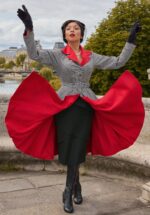 “Introducing Nadia Bo!“ Sie wurde entworfen, damit du, wenn du im Regen stehst, trotzdem trocken bleibst und stylisch aussiehst! Sie stammt aus der neuen Kollektion der Marke Miss Candyfloss: “Vintage Glam Icons“. Die Kollektion hat sich von den glamourösen ersten Supermodels inspirieren lassen und wurde aus einem wasserabweisenden, weinroten Stoff gefertigt und mit einem karierten Bouclé Futter am Kragen, an den Taschen und am Ärmelaufschlag gefüttert. Trage diesen Mantel mit Eleganz und Stil!   * Swing Style * Wasserabweisend * Lange Ärmel * Knopfreihe * Abnehmbarer Gürtel, für eine besonders tolle Taille  * Seitentaschen * Komplett gefüttert * Fällt bei einer Größe von 1,70 m auf die Wade