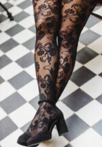 Fleur Lace Strumpfhose in Schwarz