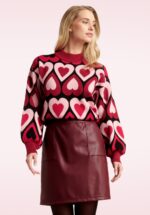 Holly Hearts Pullover in Schwarz und Bordeaux.