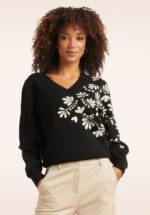Spannende Details machen den Unterschied: Der Pullover Emmy ist einfach zum Verlieben! Er hat lange Ballonärmel, die ihm einen eleganten, femininen Look verleihen, und ist mit wunderschönen Blumenstickereien in Blautönen verziert, die einen dezenten Kontrast zum schwarzen Untergrund bilden. Das Modell ist aus einem fein gestrickten, weichen und geschmeidigen Viskosemischgewebe gefertigt, das herrlich angenehm zu tragen ist. * Lockere Passform * Lange Ballonärmel * Elastische Rippbündchen * Passend für Hosen mit normaler Leibhöhe