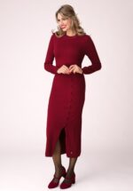 Strick happens – und sieht einfach unglaublich toll aus! 😉 Das Modell Nela ist aus einem fein gestrickten, weichen Viskosemischgewebe in Bordeauxrot gefertigt und mit Zierknöpfen sowie einem koketten Schlitz an der Vorderseite versehen. * Kein Reißverschluss, keine Knöpfe: einfach reinschlüpfen und los geht’s! * Lange Ärmel * Zierknöpfe * Schlitz vorne * Endet bei einer Körpergröße von 1,70 m unterhalb der Wade * Bitte beachte: Die Farbe der Hose im Video kann von der tatsächlichen Farbe der Hose abweichen
