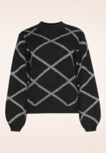 Ein bisschen Glitzer kann nie schaden! Das Modell Natalia ist aus einem fein gestrickten, weichen und dehnbaren Viskosemischgewebe in Schwarz gefertigt, dessen cooles Karomuster dezent mit silberfarbenen Glitzerfäden durchzogen ist. Die perfekte Mischung aus Komfort, Stil und einem Hauch von Glanz! * Oversize * Lange Ballonärmel * Elastische Rippbündchen * Passend für Hosen mit normaler Leibhöhe
