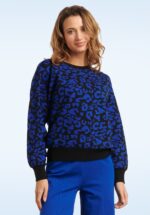 Lennie Leopard Strickpullover in Schwarz und Kobaltblau