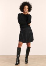 Mach dich bereit für Glanz und Glitzer! Dieser A-Linien-Rock ist ein echter Hingucker! Das Modell in Schwarz ist aus einem Viskosemischgewebe mit dezenter Plissee-Struktur gefertigt, das aufgrund der eingewebten silberfarbenen Glitzerfäden bei jedem Schritt leicht funkelt. Der Rock mit schmeichelhaftem Schnitt zaubert eine feminine Silhouette und passt super zu kuscheligen Pullovern oder schicken Blusen, sodass du ihn tagsüber wie auch abends tragen kannst. * Ausgestellter Schnitt * Elastischer Bund * Endet bei einer Körpergröße von 1,70 m knapp über dem Knie