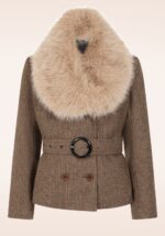Das Leben ist kurz. Also greif gleich zu und schnapp dir diese wunderbare Jacke! Das langärmelige Modell mit doppelter Knopfleiste besticht durch einen eleganten Reverskragen mit abnehmbarem Kunstfellaufsatz. Die vollständig gefütterte Jacke ist aus einem festen, karierten Wollmischgewebe (nicht elastisch) in Braun gefertigt. * Leicht tailliert * Abnehmbarer Kunstpelzkragen in Beige * Lange Ärmel * Abnehmbarer Gürtel für eine besonders betonte Taille * Doppelte Knopfleiste * Mit Taschen! * Mit satinartigem Stoff gefüttert * Exklusiv bei Topvintage erhältlich