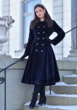 “Velvet curves and midnight hues – a coat made for starlets and stolen glances!“ Diesen Mae Swing Mantel gibt es exklusiv bei Topvintage und er sieht nicht nur wunderschön aus, er hält dich an kalten Tagen auch herrlich warm! Er hat eine doppelte Knopfreihe, praktische Taschen vorne und wurde aus einem weichen, wattierten, kaum dehnbaren, dunkelblauen Stoff mit der Optik und Haptik von luxuriösem Samt gefertigt und für den Extra-Komfort komplett gefüttert. * Swing Modell * Doppelte Knopfreihe * Komplett gefüttert * Mit Taschen! * Fällt bei einer Größe von 1,70 m über das Knie * Exklusiv bei Topvintage erhältlich