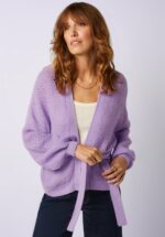 Bequem und gemütlich war noch nie so schick: Diese vielseitig kombinierbare Strickjacke mit abnehmbarem Bindegürtel und auffälligen langen Puffärmeln ist aus einer grob gestrickten, anschmiegsamen und elastischen Acrylmischung mit Woll- und Mohair-Anteil gefertigt. Das Modell in hellem Lila besticht durch ein attraktives Lochmuster. * Lange Puffärmel * Kein Verschluss * Lochmuster * Abnehmbarer Bindegürtel * Passend für Hosen mit normaler Leibhöhe