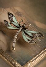 “Dragonflies are kisses from heaven!“ Diese zierliche, Art Deco inspirierte Brosche wurde aus antik goldfarbenem Metall gefertigt und mit wunderbaren Strasssteinchen und mintgrünen/hellblauen emaillierten Flügeln versehen. * Antik goldfarbenes Metall * Strasssteinchen * Stiftverschluss